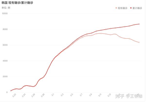 我们以韩国的人工干预下的疫情曲线图作为参考: